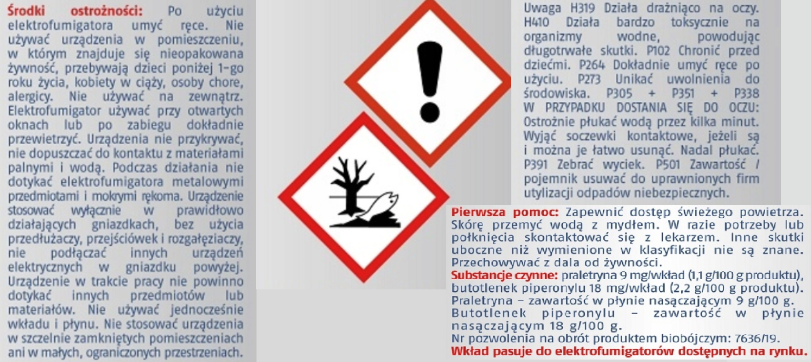 UWAGA! Wkłady działają również z większością elektrofumigatorów dostępnych na rynku.