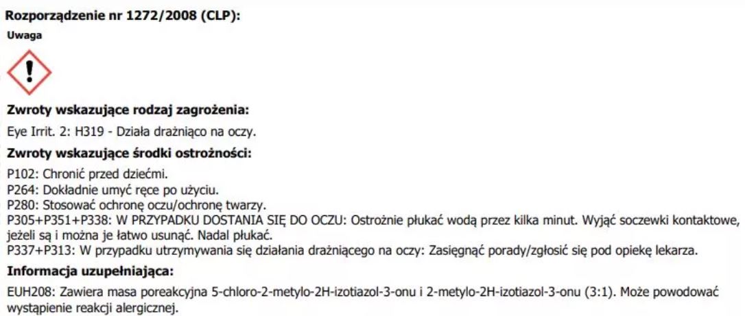 Unikać kontaktu z oczami. Przechowywać z dala od dzieci.